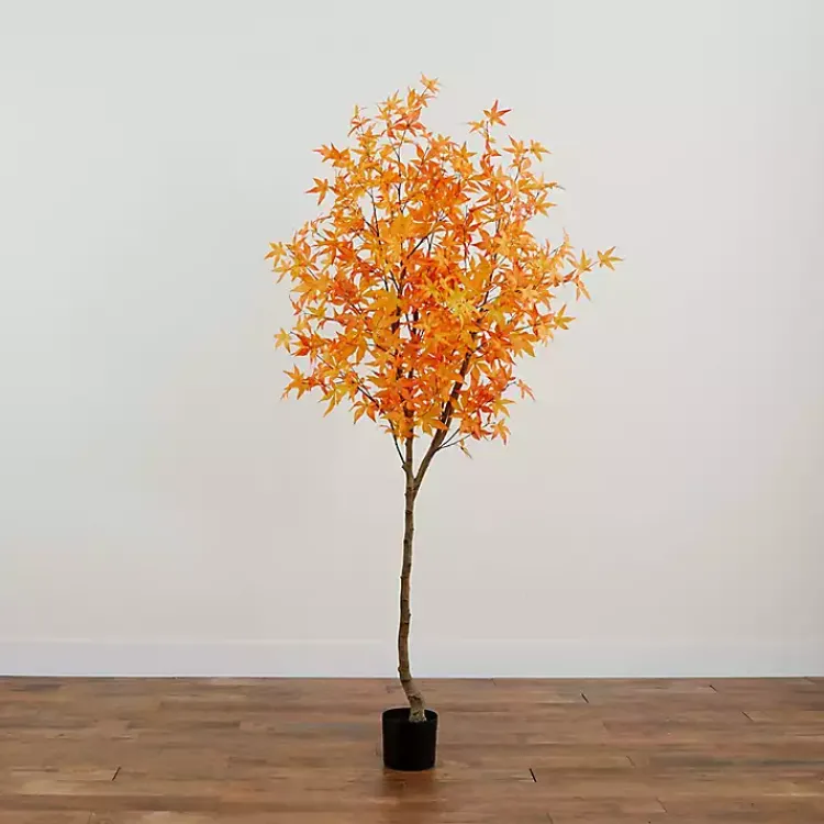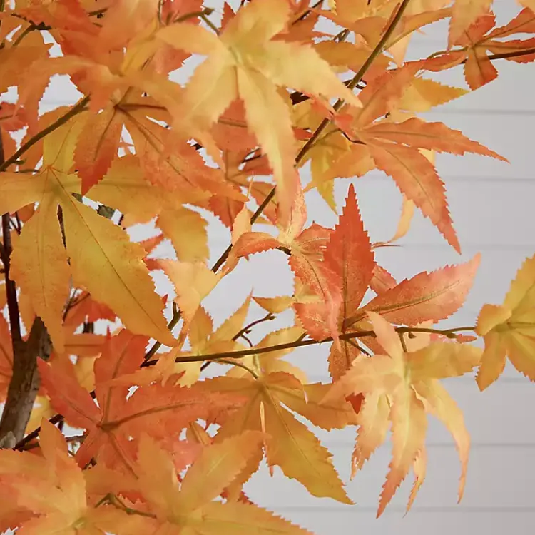 Bring the changing leaves of fall into your home with this Orange Maple Tree in Black Planter. Its warm tones will bring a lovely seasonal charm to any corner!