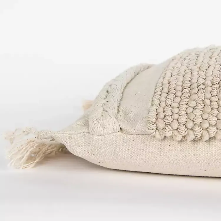 Make your apartment space look complete with a comfy finishing touch! Our Ivory Tufted Macrame Tassels Lumbar Pillow is the perfect woven accent for your sofa.