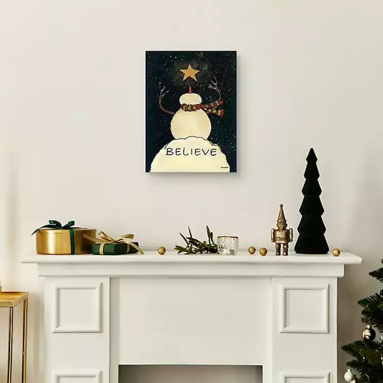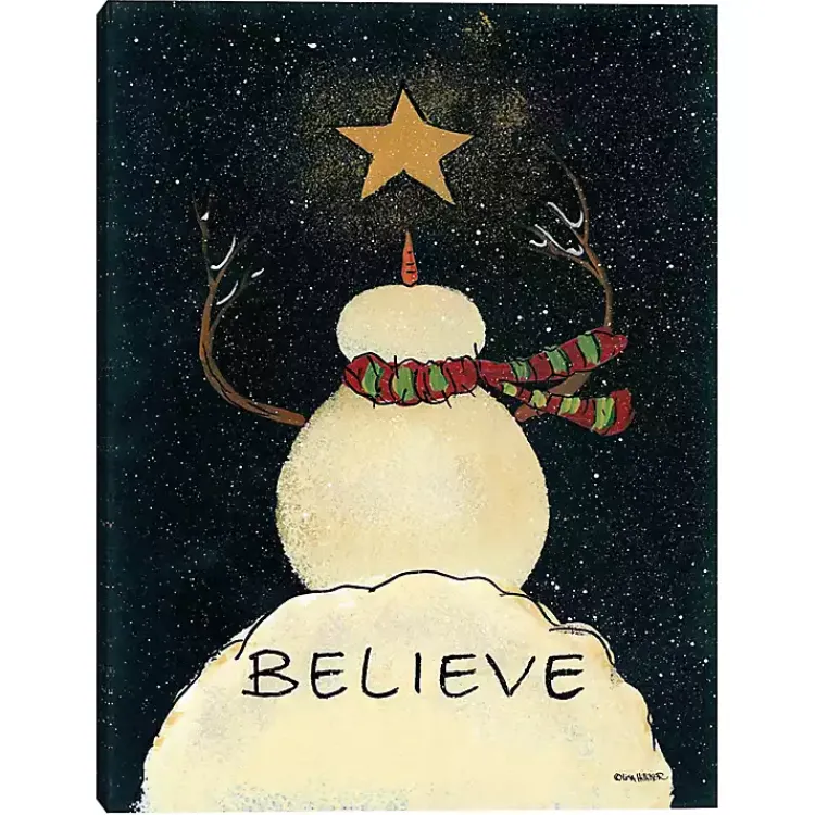 With its Americana style, this Believe Snowman Canvas Art Print radiates a cozy Christmas charm. Its sure to add a little magic to your walls this season!