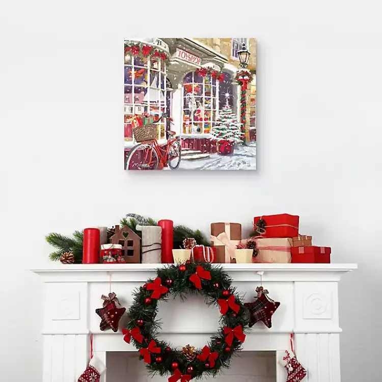 Our Christmas Toy Shop Storefront Canvas Art Print features a quaint, snowy scene that is perfect for your Christmas decorations this year! You’ll love the whimsical charm it brings to your home this holiday season.