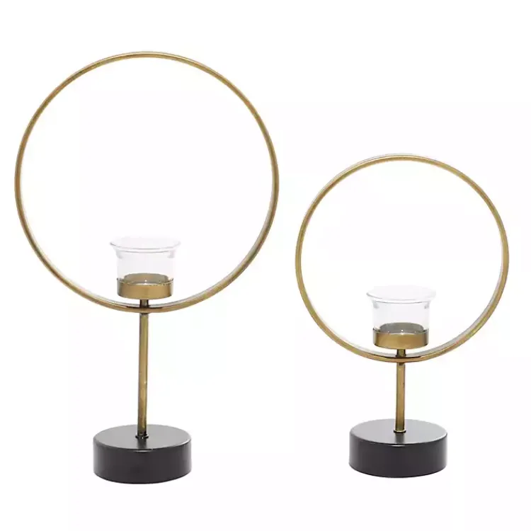Add unique style to your space with this eye-catching set. The Golden Halo 2-pc. Candle Holder Set will complement any well-decorated living space.
