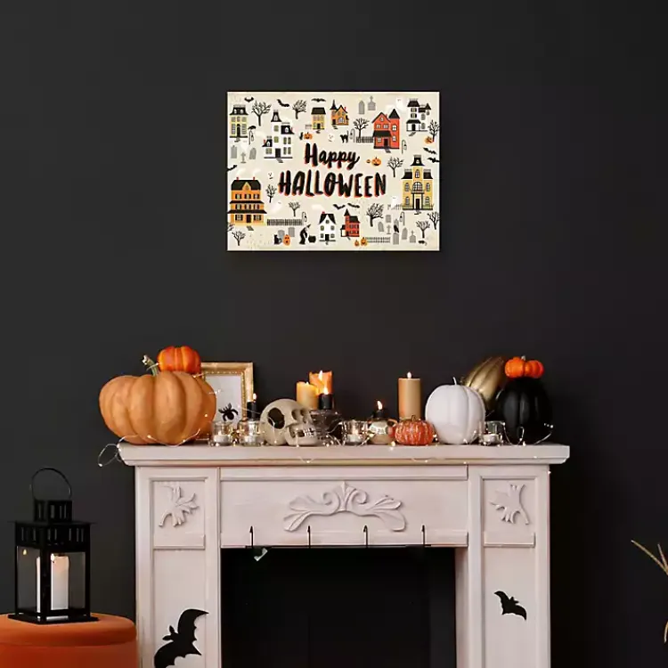 You’ll feel a shiver down your spine when you see this festive Halloween wall art. The Happy Halloween Town Halloween Wall Art is hauntingly stylish.