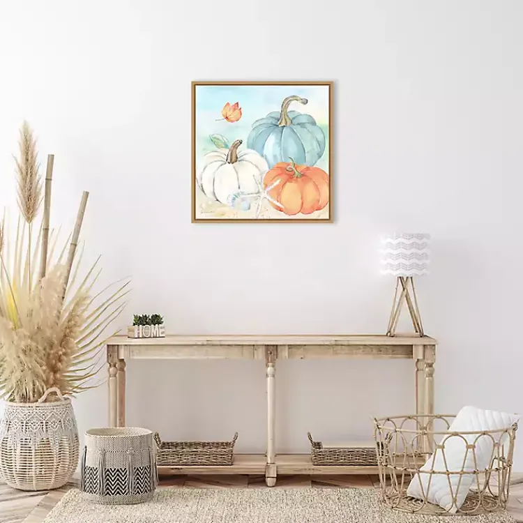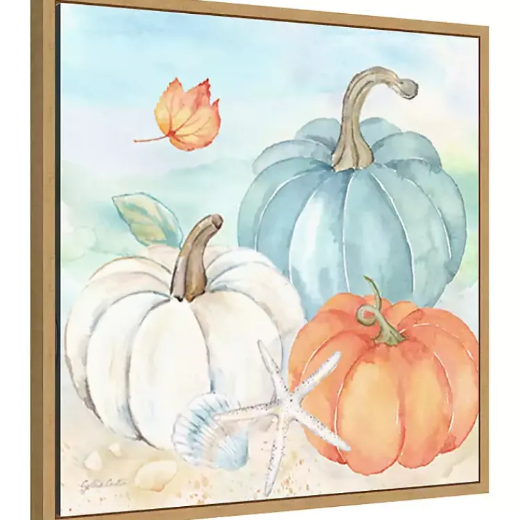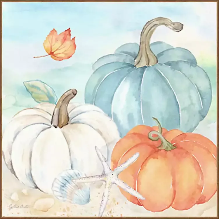 Take fall to the shore with this Harvest by the Sea Canvas Art Print. White and light blue tones in a watercolor style adds to its charming, coastal ambiance!
