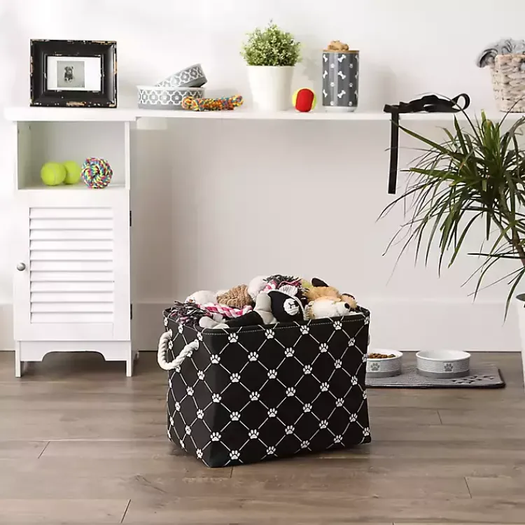 Keep those dog or cat toys out of sight with our Black Paw Trellis Rectangle Basket! This sturdy basket features a charming design that won’t disturb your existing decor.
