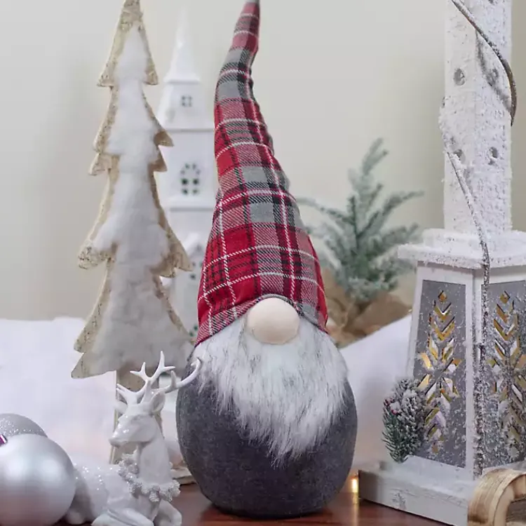 Bring some good luck to the holiday season with this Red and Gray Plaid Hat Sitting Christmas Gnome! This adorable creature helps keep the magic of Christmas alive.