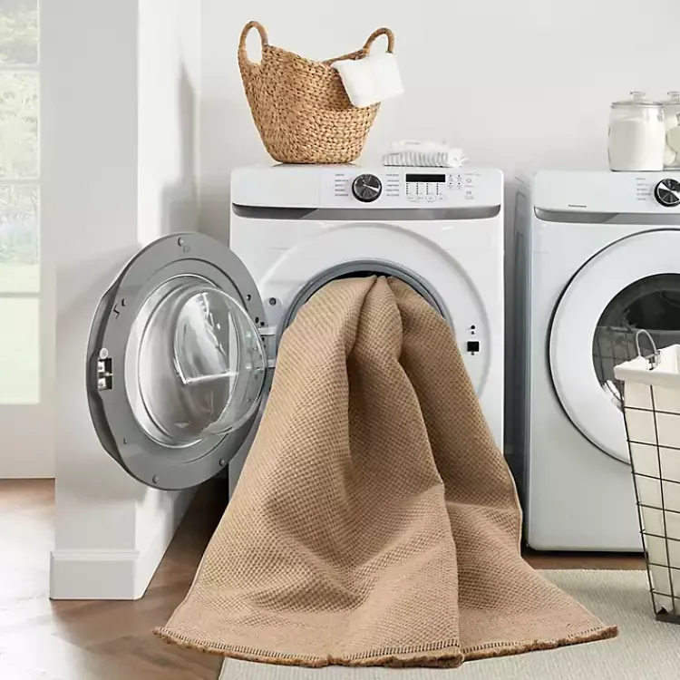 - Crafted of jute, cotton, and polyester with a cotton/EVA backing