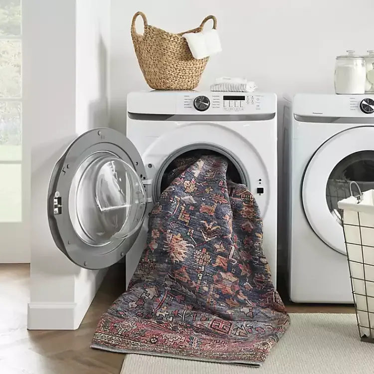 Incorporate timeless, vintage appeal into your space with this Navy & Brick Botanical Washable Area Rug. Showcasing endless motifs in a dark color palette, it’s sure to make a dramatic statement.