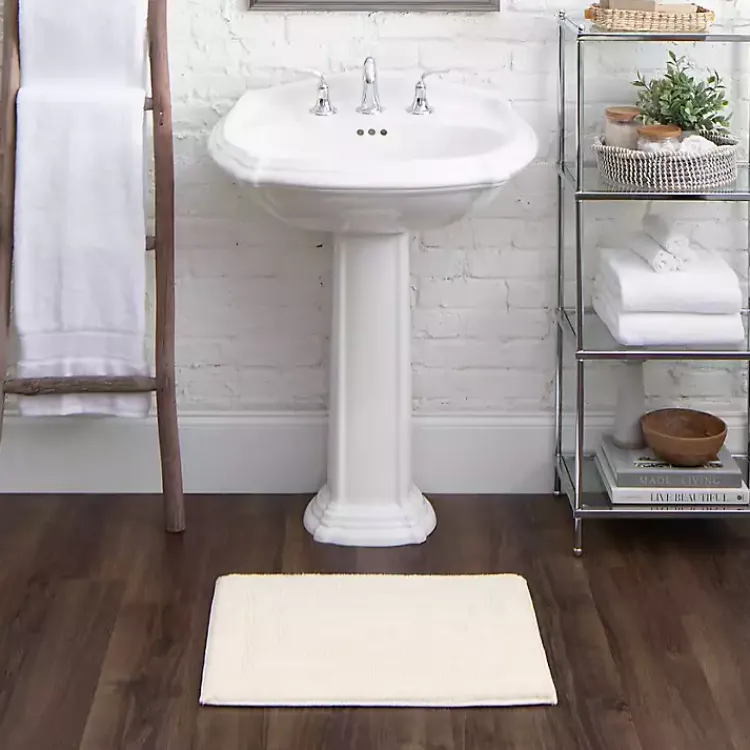 Add a new sense of coziness to your powder room atmosphere with this Creme Plush Reversible Cotton Bath Mat! You’ll love the versatile color and the soft, hand-sewn texture.