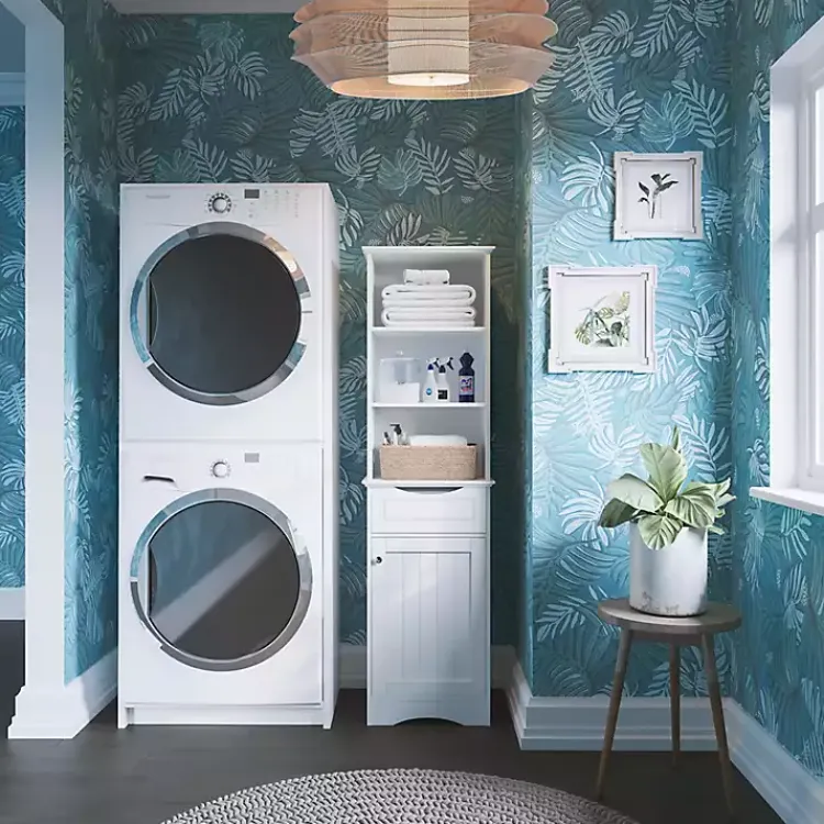 Show off your design style anywhere in your house with this Tall White Open Shelves Cabinet. Its multi-purpose design is the storage solution you’ve been looking for. You’ll love how its white finish and open shelves look in any room!