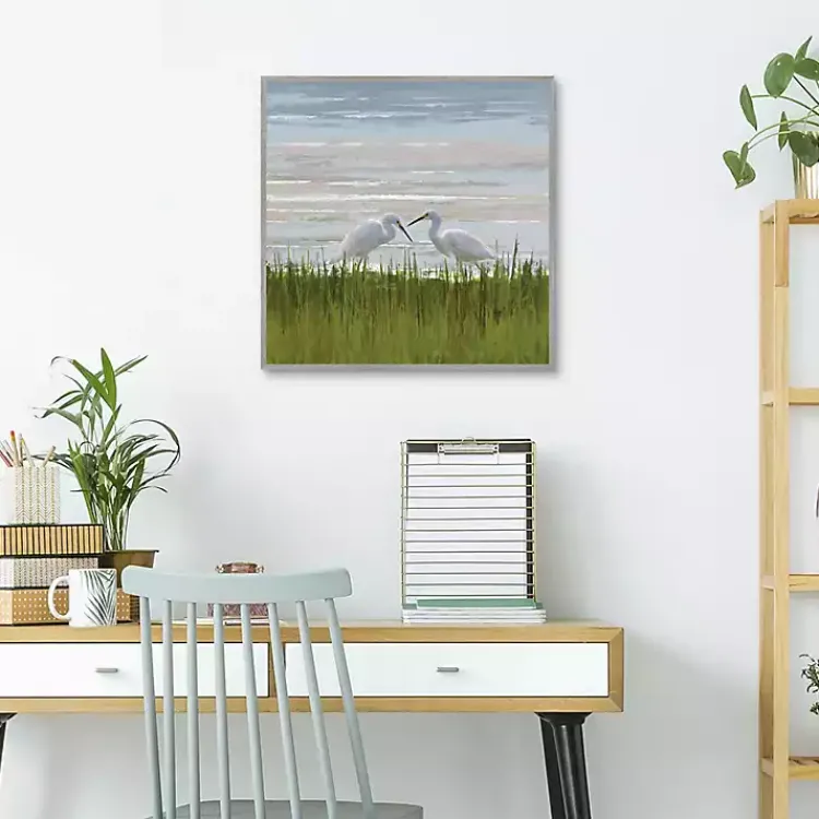 Spread love and peace into your home with the Egret Meeting Framed Canvas Art Print. This lovely canvas will melt your h…