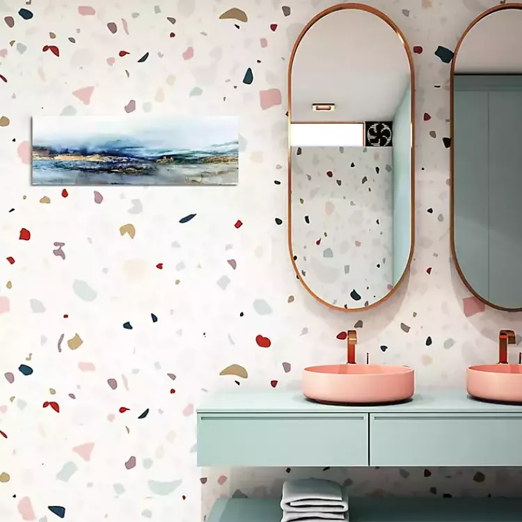The Blue Elusive Dreams Canvas Art Print showcases an abstract scene with hints of gold that draws the viewer in. Style this alluring work of art in an office or conversation area.