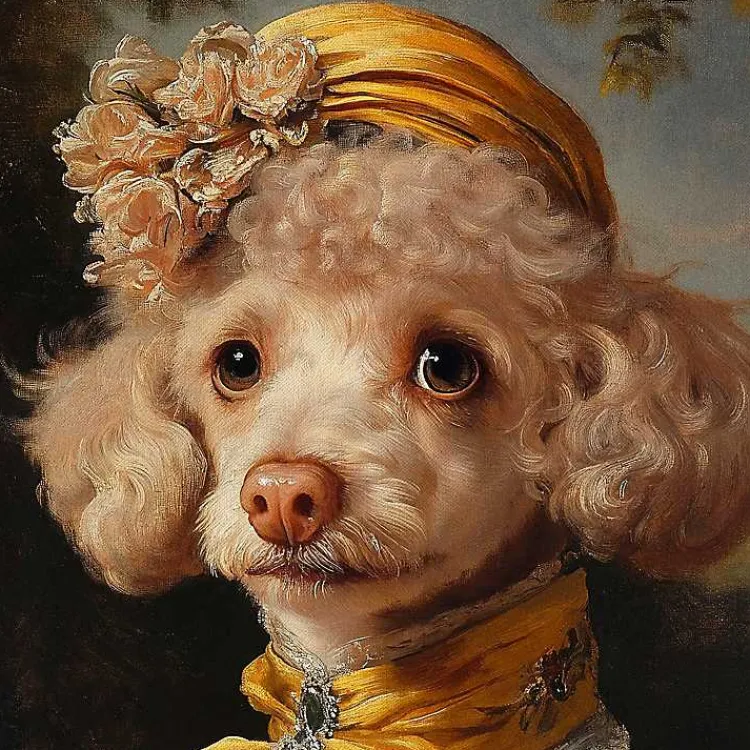Add a touch of regal charm to your home with our Lady Rosaline Ruffleton Framed Art Print! It’s perfect for dog lovers…