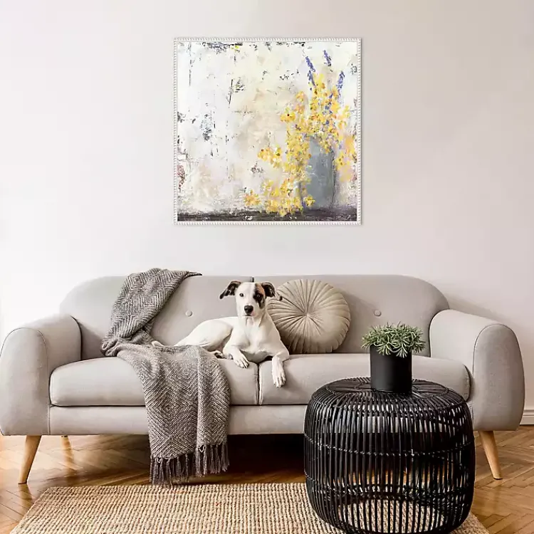 Let the yellow flowers of the Rustic Romance Framed Canvas Art Print fill your room with passion and warmth. The vivid floral elements of this abstract piece will be a lovely addition to your modern home!