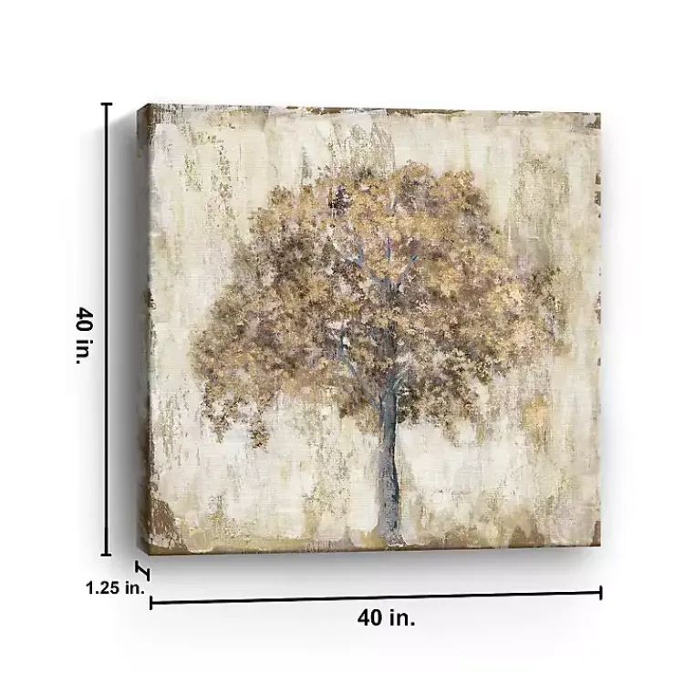 Admire the rustic beauty of nature with the Venetian Gold Tree Canvas Art Print. Flecks of gold leaves and soft brushstrokes create a dreamy scene that brings warmth into any space.