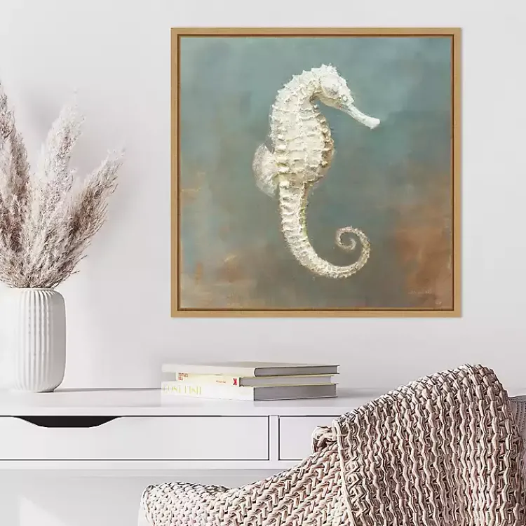 Add some marine life art to your home with the White Seahorse Canvas Art Print. The pastel colors and unique design of t…