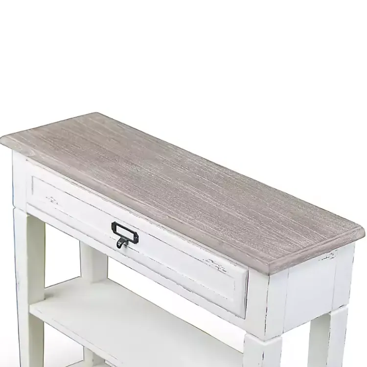 Bring some shabby chic charm to your space with our stunning Distressed White 1-Drawer Console Table. You’ll love the farmhouse flair that this table adds to your home.