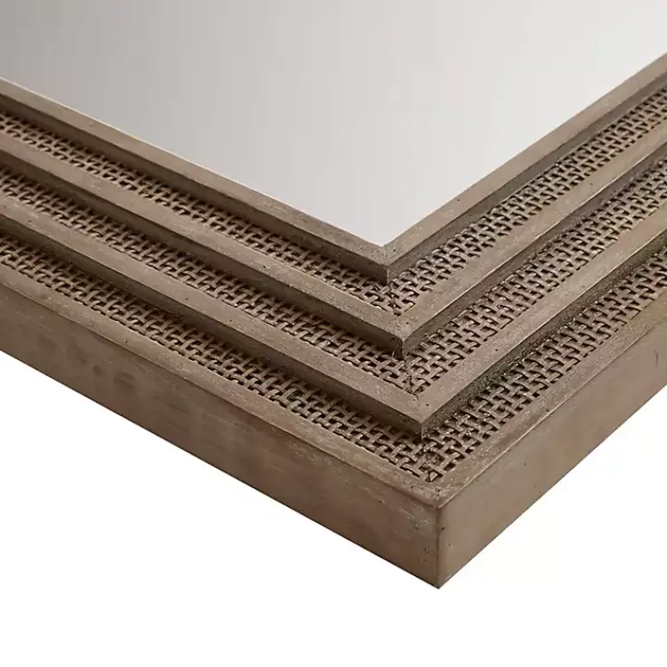 This Martha Stewart Natural Naomi Wall Mirror embodies meticulous craftsmanship, effortlessly blending natural rattan and solid wood around a gleaming glass mirror!