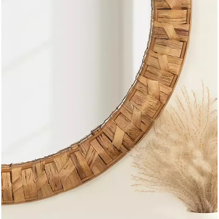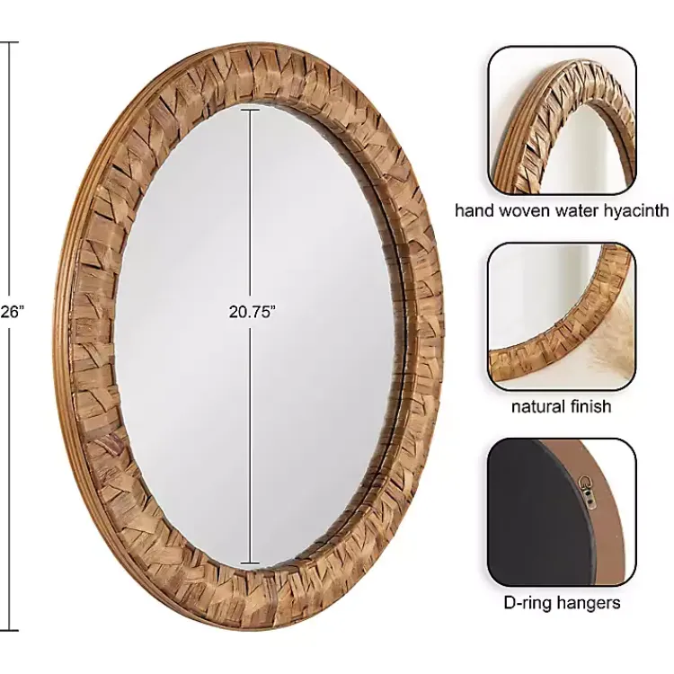 Make any room feel bigger and brighter with this Round Natural Woven Water Hyacinth Wall Mirror. Its hand-woven frame is ideal for a coastal or boho look!