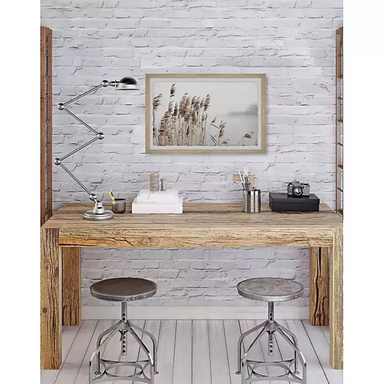 Complement your wall space in a breezy way! Featuring neutral colors and unique edging, our Deckled Lakeside Grass Framed Art Print is a calming piece.