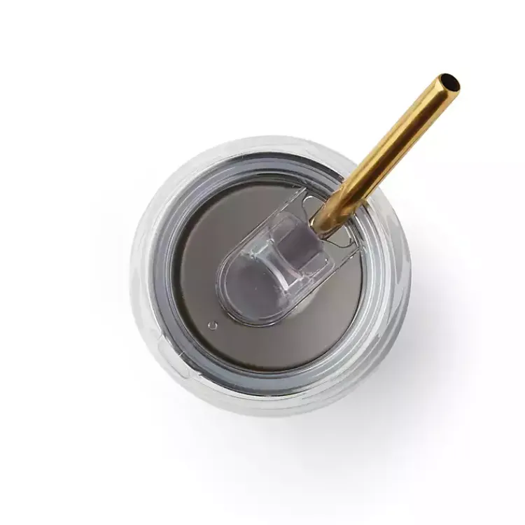 - Includes BPA-free clear lid and stainless steel gold straw