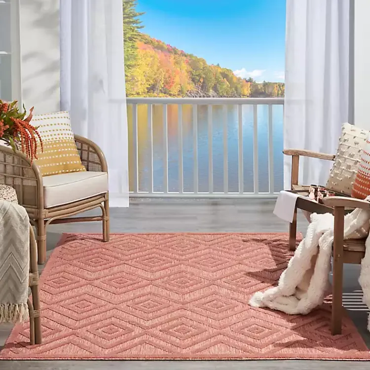 Roll out something better than a red carpet. The Bright Coral Diamond Outdoor Area Rug has a geometric, eye-catching design that will elevate your space.