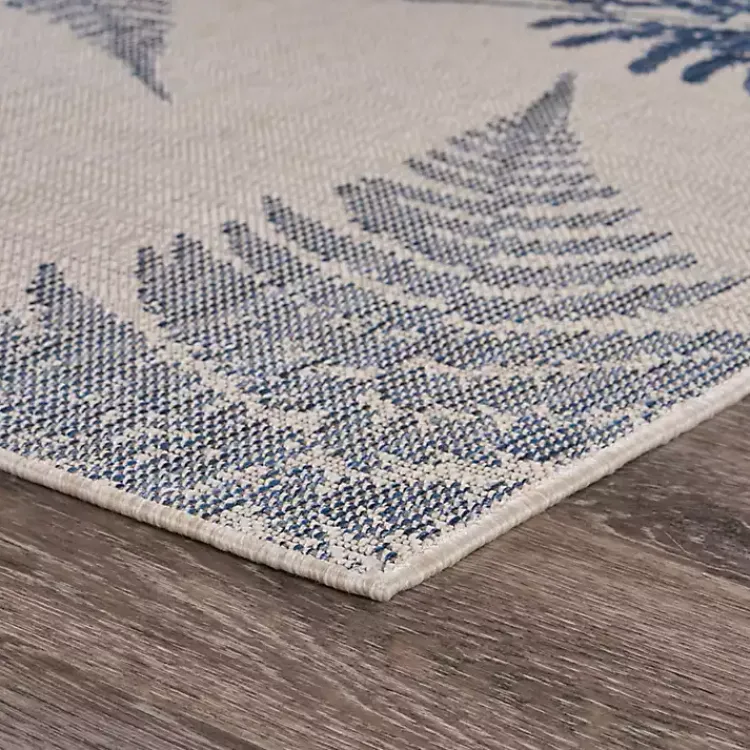 Our Gray and Navy Falling Ferns Outdoor Area Rug will bring a calming energy to your home. Lay it under neutral furniture and lively greenery for a modern look.