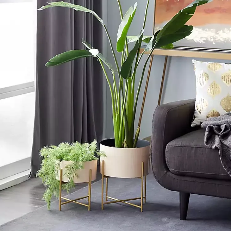 Give your philodendrons a makeover with these Peach Iron X-Base Planters! The modern design and trendy pastel color makes this versatile duo perfect for your home.