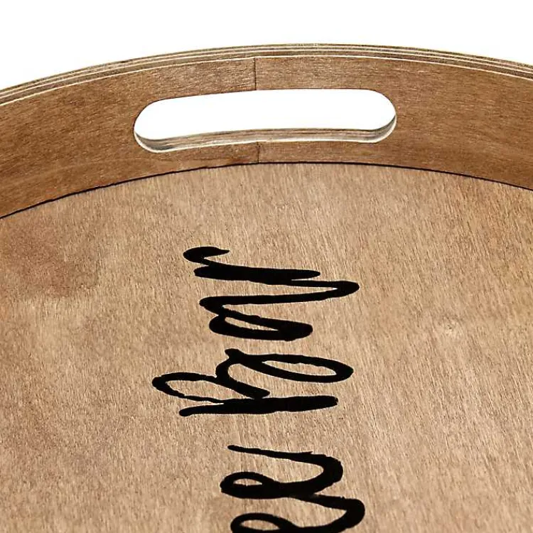 Display your cream, sugar, and other coffee accessories with this Round Brown Wood Coffee Bar Tray. Use it to create your own coffee corner in your kitchen!