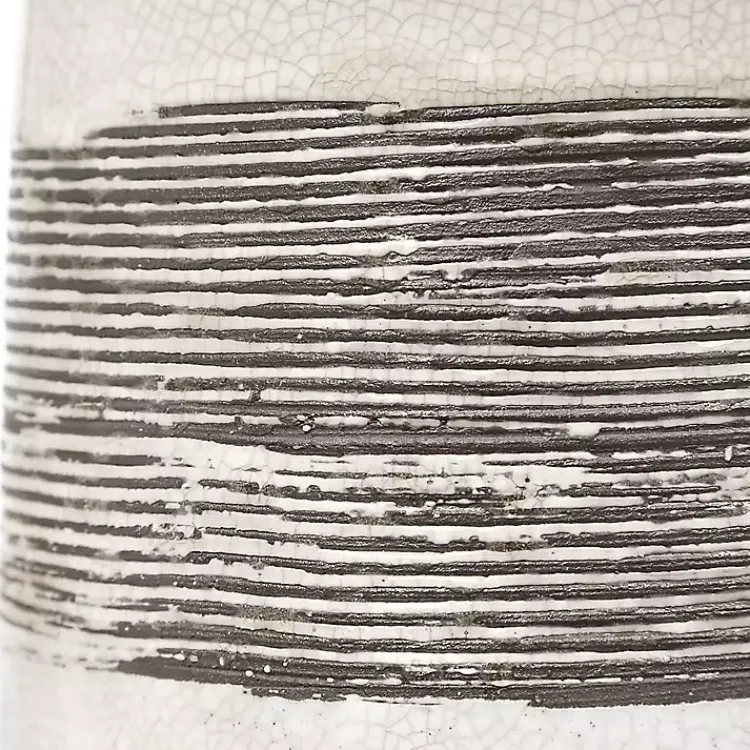 Make your space more inviting with a soft touch of light! With crackle accents and a bright glow, this White and Brown Distressed Stripe Table Lamp will add a cozy charm to any room!