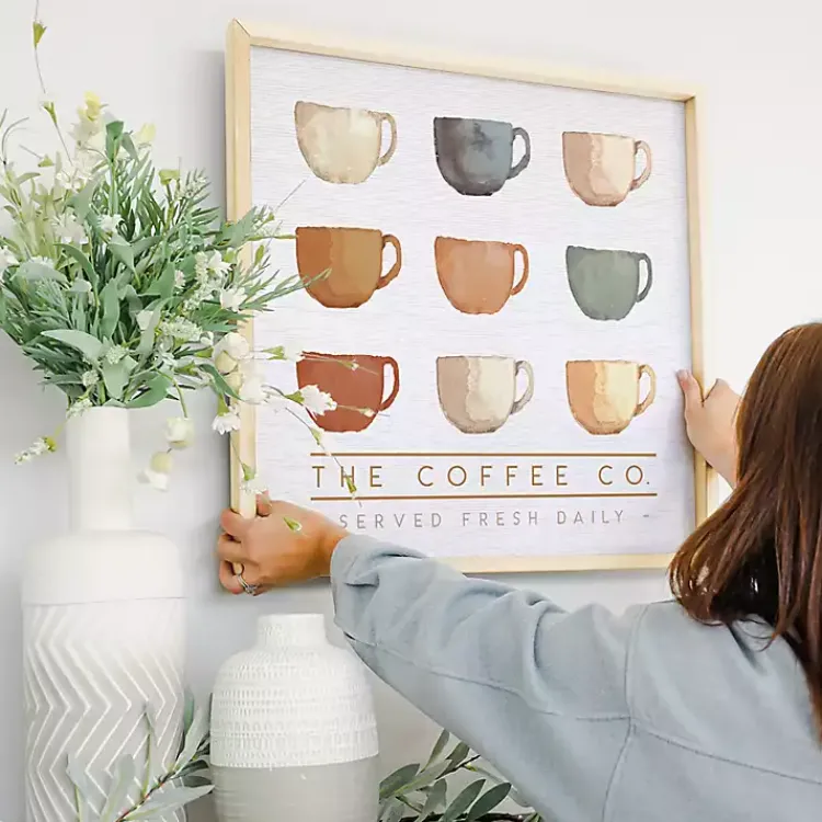 Turn your kitchen into a cozy cafe with this Coffee Co Mugs Wall Plaque! The soft, muted tones will blend with your décor while complementing your modern style.