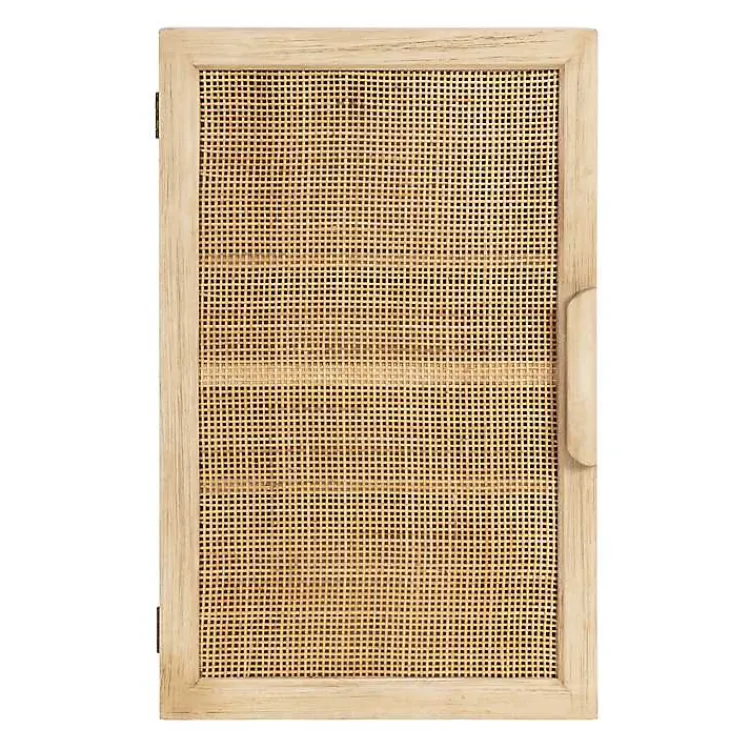 Give your space a lovely textural accent with this Natural Rattan Wall Cabinet. Featuring three tall shelves within a solid wood frame, it seamlessly adds storage and style to any room!