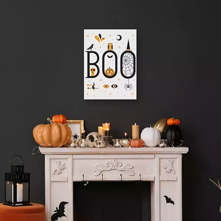 Complete with a witch, a jack o lantern, and more, this Boo Festive Fright Canvas Art Print captures the spirit of Halloween. It will bring a fun flair to your home this spooky season!