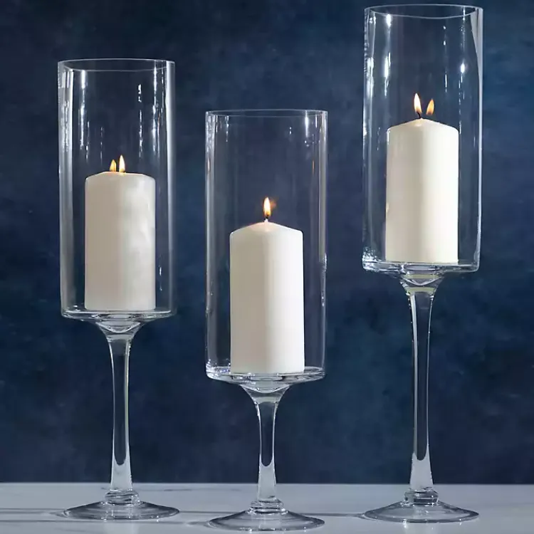 These Glass Stem Hurricanes add height and elegance to your decor. Place your favorite candles inside them to give your space the glow its missing.