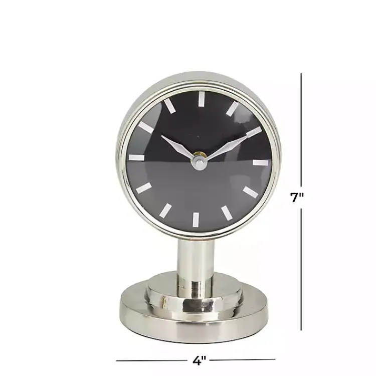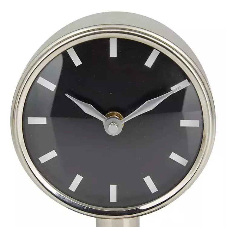 The Metallic Silver Steel Beveled Base Tabletop Clock will elegantly shine on any desk, bookshelf, or tabletop! You’ll love the modern, minimalist charm it adds to your décor.