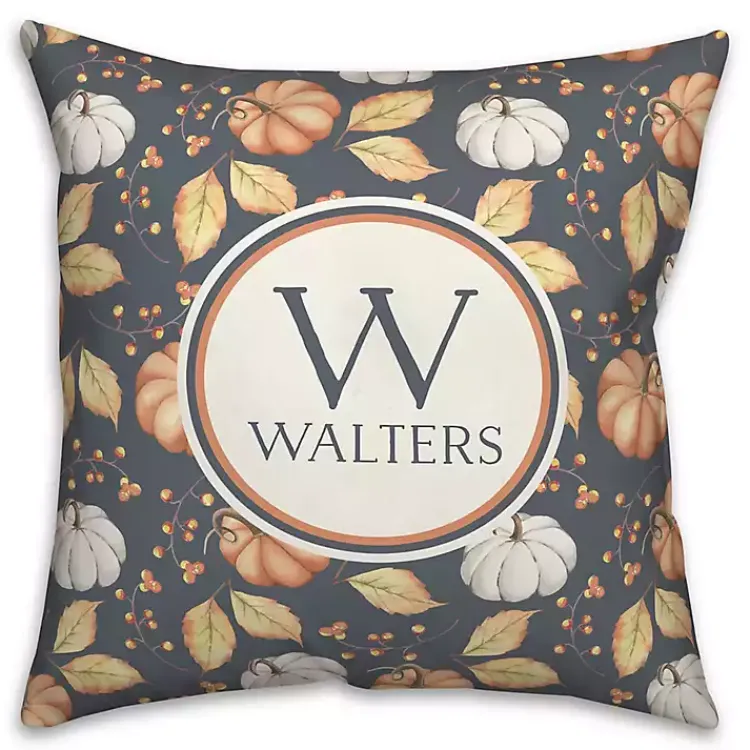 New Personalized Pumpkin & Leaves Monogram Pillow Fall