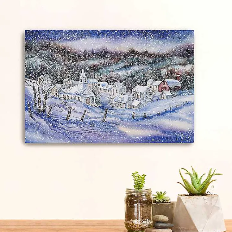 Make your home look cozy this season with some small town comfort! Our Winter Wonderland Village Canvas Art Print depicts the joy and tranquility of a white Christmas.