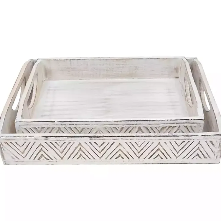 Keep your trinkets and accessories organized with the set of Brushed White Chevron Carved Trays. You’ll love how they lend rustic-boho charm to your home décor.