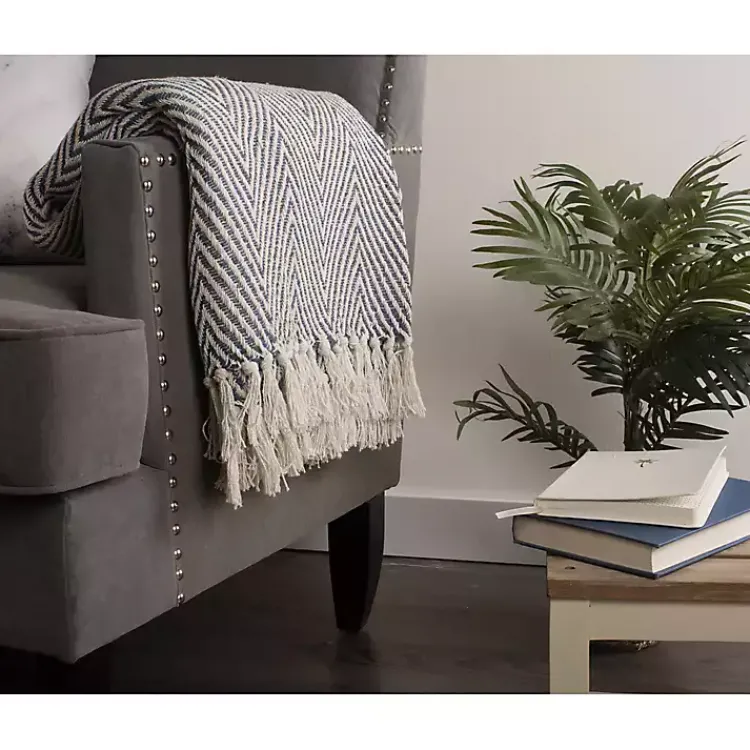 Our French Blue Chevron and Fringe Throw is just the cozy finishing touch you need! This throw is perfect for keeping warm and snuggling up with your favorite book.