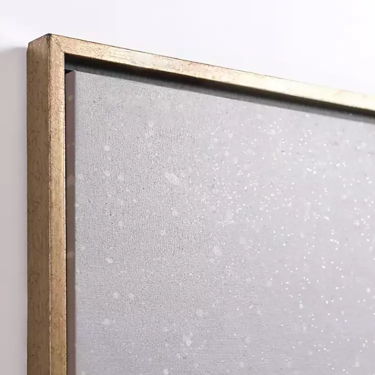 Add a touch of glamorous to your holiday decor with this Golden Snowy Trees Framed Canvas Art Print. Its golden frame and details will make your walls shine with Christmas magic!