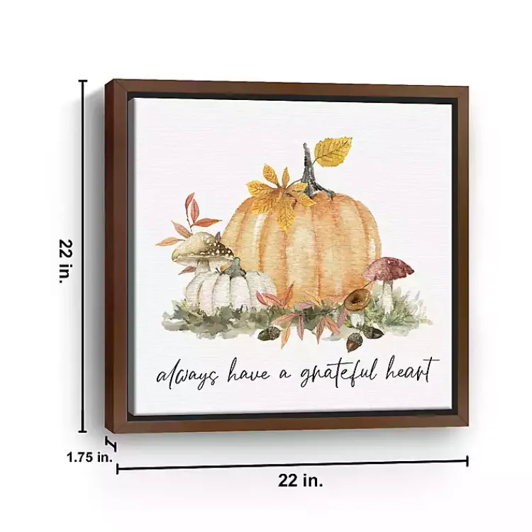 Fill your home with the feeling of fall with this Have a Grateful Heart Framed Canvas Art Print. Its cute pumpkins and endearing quote are perfect for the season!