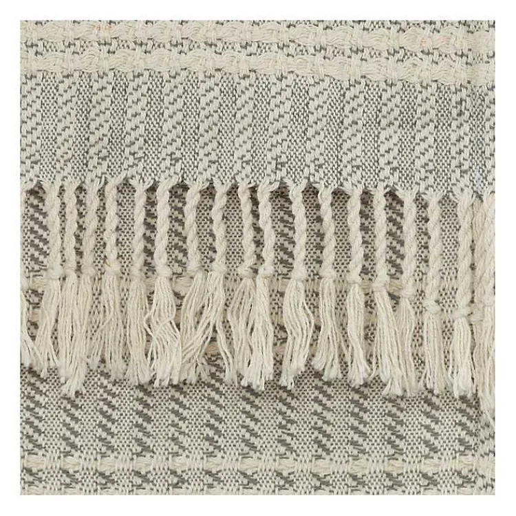 Add a cozy touch of style to your space with this Light Gray and Ivory Striped Cotton Throw. Its soft, boho design is perfect for cuddling up with a good book or movie!