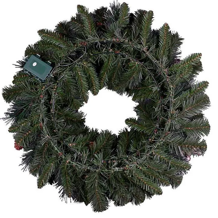 The Pre-Lit Crestwood Gold Spruce Christmas Wreath will radiate a mesmerizing glow on your front door. Featuring rustic pinecones, gold glitter berries, and silver branch tips, this holiday wreath will become a staple in your winter decor for years to come.