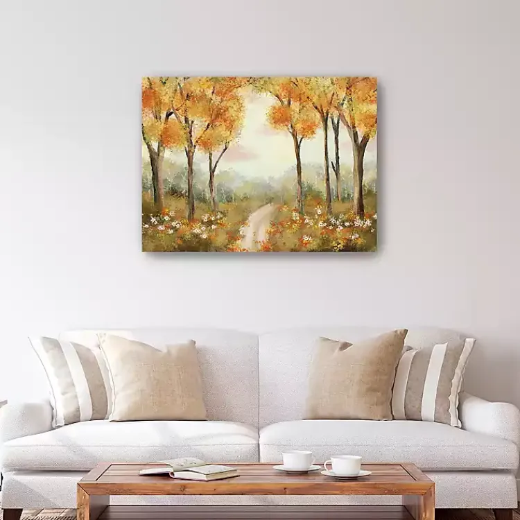 Featuring a dreamy fall landscape, this Sun-Kissed Grove Canvas Art Print will bring seasonal spirit into your home. Its warm, earthy tones will come to life on your walls!
