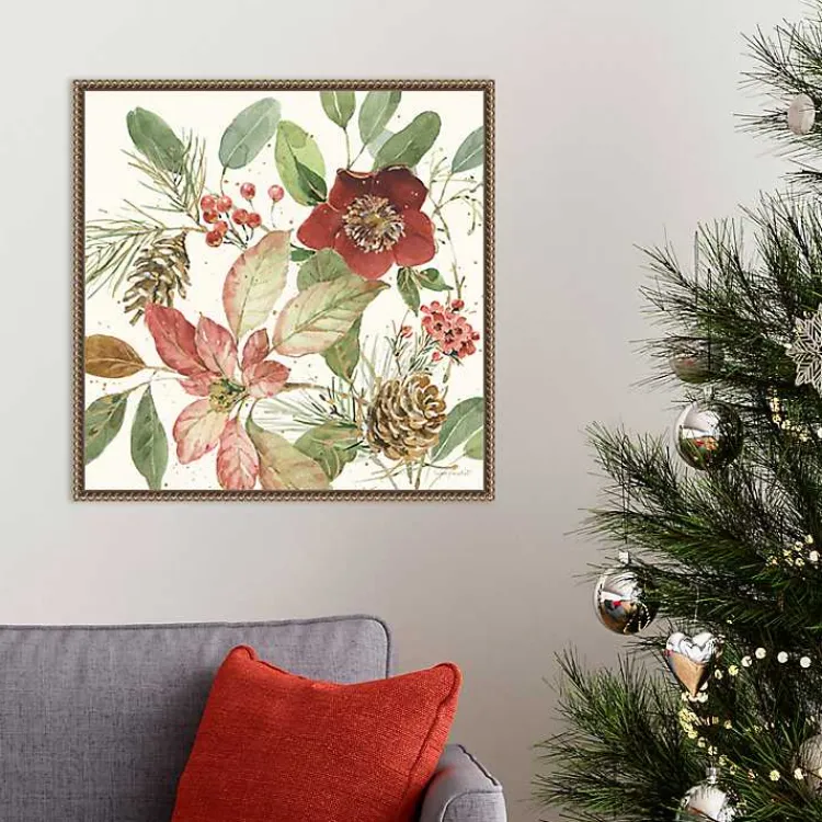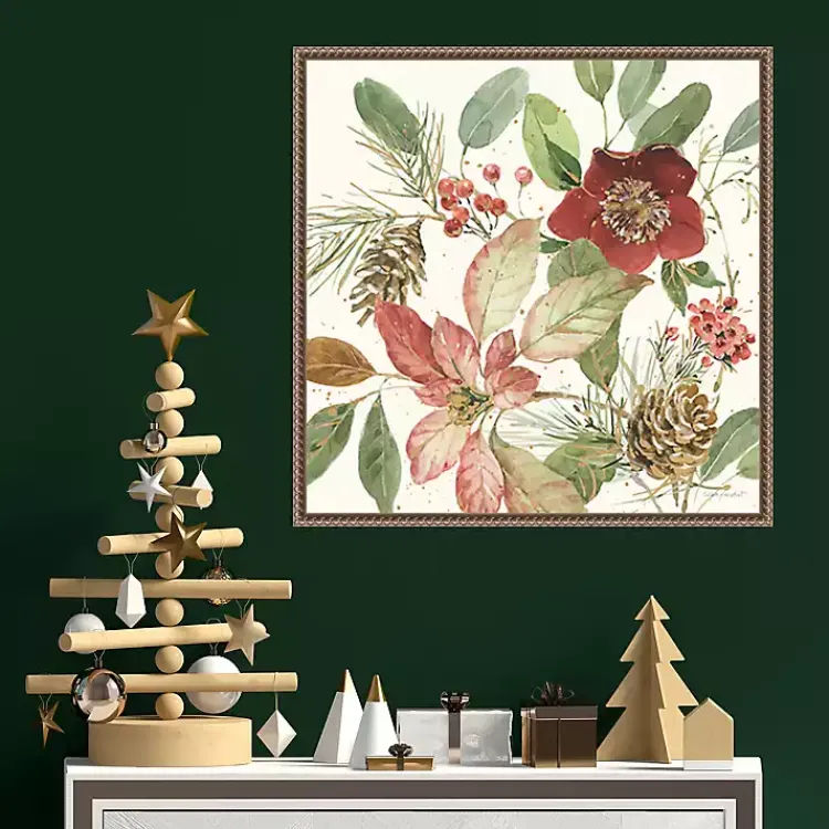 This Winter Blooms Framed Canvas Art Print will bring your walls to life with a charming floral arrangement. Its elegant design and golden frame will fill any room with holiday cheer!