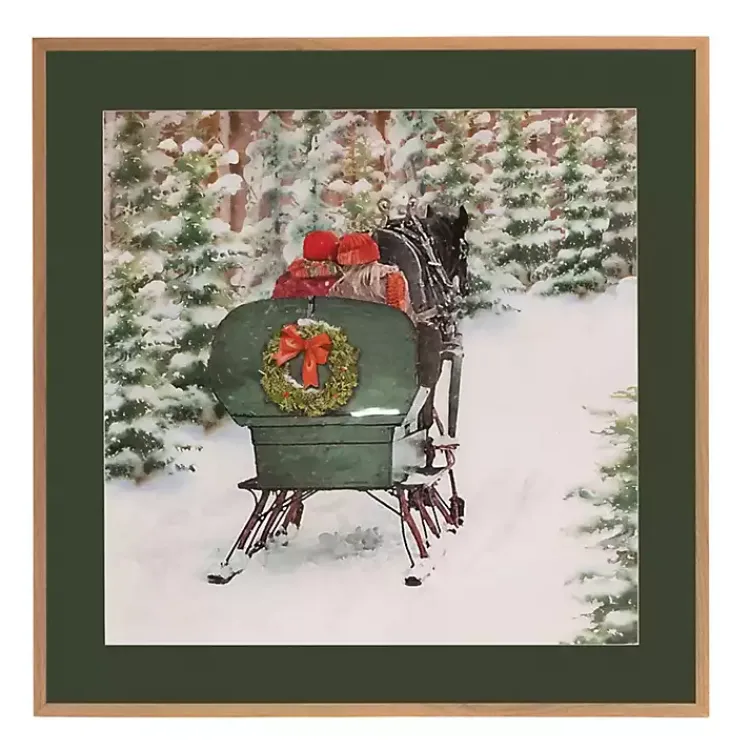 Featuring a sleigh gliding through snowy pines, this Winter Sleigh Ride Framed Art Print will put a cozy Christmas cheer on your walls. It will have you ready to go dashing through the snow!