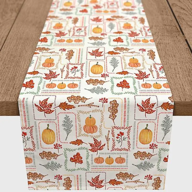 Put a cute touch on Thanksgiving dinner with this Autumn Patchwork Table Runner. Featuring pumpkins and fall leaves, it adds a festive charm to your table setting!