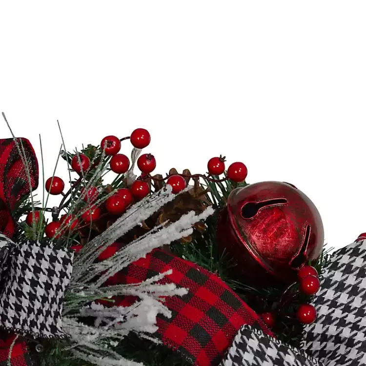 - Artificial mix of greenery, ornaments, and bows