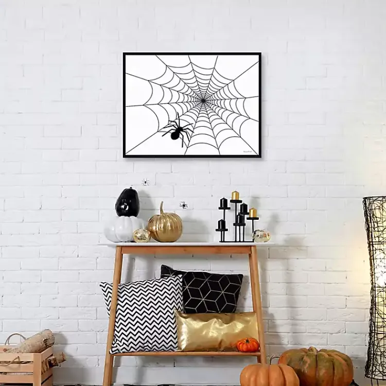 Make your house a little haunted with this Spider Web Framed Canvas Art Print. The spooky spider will add a creepy, crawly addition to your Halloween party!