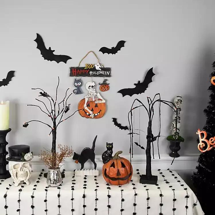 Our Boo Happy Halloween Wall Sign will look spooky hanging anywhere it your haunted home! Plus, the classic Halloween icons will get you in a festive mood!