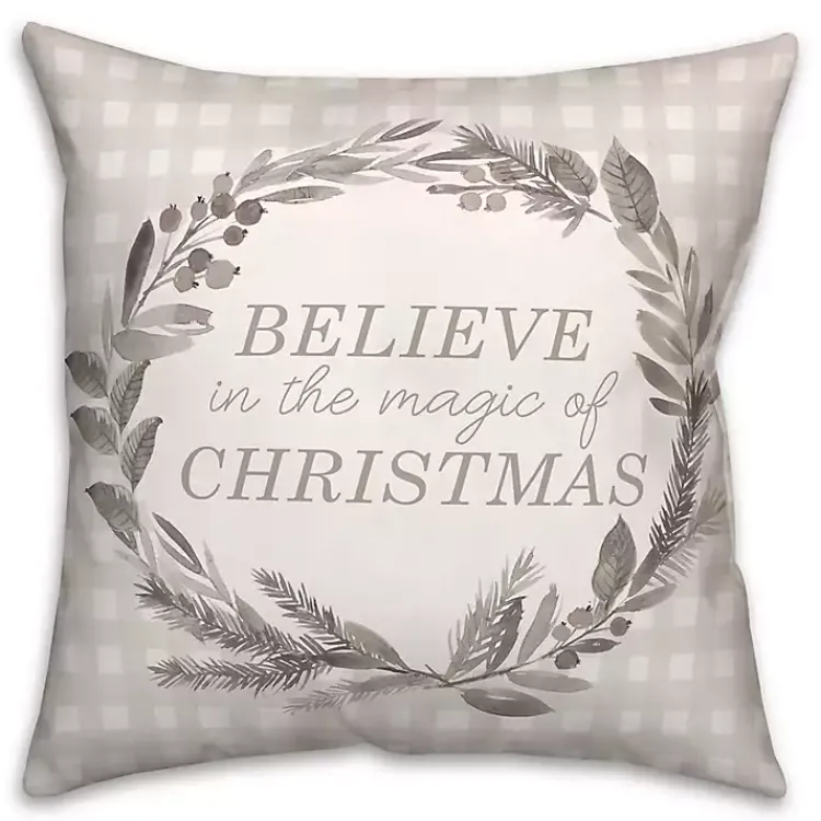 - Reads, “Believe in the magic of Christmas” inside a wreath